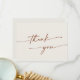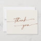 Cette carte de remerciements de boho chic crème mariage plat est parfaite pour un mariage minimaliste. Le design bohème moderne en terre cuite neutre orangée et crème présente une calligraphie rustique simple au style unique mais classique. Le dos de la carte de remerciements est vide pour que vous puissiez écrire à la main une note réfléchie.