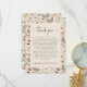 Exprimez votre gratitude avec style grâce à cette élégante carte de remerciement avec écriture manuscrite, dotée d'une typographie sophistiquée sur le devant et d'un motif coordonné au dos pour un look magnifiquement soigné. Conçue pour s'harmoniser avec la collection best-seller Rustic Boho Wildflowers, cette carte incorpore la palette de couleurs chaudes et terreuses de la collection, composée de tan, marron, rouille, terre cuite, violet, bleu, rose et orange brûlé. Entièrement personnalisable, vous pouvez ajuster le texte, les styles de police et l'arrière-plan pour créer un message de remerciement significatif. Que ce soit pour des amis, la famille ou des mentors, cette carte de remerciement élégante rend chaque message encore plus spécial – personnalisez la vôtre dès aujourd'hui !