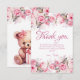 Carte De Remerciements Boho Teddy Bear Girl Pink Bear Floral Birthday