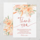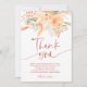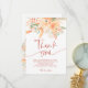 Montrez votre sincère gratitude avec notre carte de remerciement pour enterrement de vie de jeune fille, Boho Terracotta à peinture manuelle. Cette carte élégante présente un magnifique arrangement de fleurs aquarelles dans des tons doux de pêche, de corail et de vert, lui donnant une atmosphère chaleureuse et accueillante. Les fleurs délicates encadrent joliment le haut de la carte, ajoutant une touche de charme artistique et d'élégance bohème. Le message sincère "Merci" est visible dans une police de caractères script stylisée, ajoutant une touche de sophistication et de chaleur. La combinaison d'une typographie élégante et d'éléments floraux bohèmes fait de cette carte un choix idéal pour remercier vos invités après un enterrement de vie de jeune fille. Idéale pour exprimer vos sincères remerciements, cette carte capture la beauté et la joie de votre journée