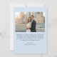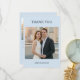 Thank your wedding guests with this modern photo thank you card in soft blue Back has a pre-printed message thanking guests for celebrating your day. Customizable with your photo and names. For couples who want a clean, minimalist way to send thanks after the wedding.