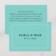 Inspirée par la teinte de bleu la plus emblématique du design de luxe, cette carte de remerciement plate et chic présente un fond bleu œuf de merle audacieux avec un cadre de bordure blanc épuré et les noms des mariés affichés dans une élégante police serif comme dessin de monogramme central. L'esthétique raffinée, inspirée des bijoux, fait une déclaration de couleur sophistiquée qui se marie parfaitement avec les styles de mariage classiques et formels. Le verso comprend un message personnalisé de gratitude qui peut être personnalisé.