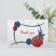 fleurs bleu marine et bordeaux sur un cadre géométrique élégant carte de remerciements botanique