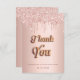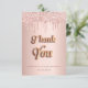 Un carte de remerciements pour un 50ème anniversaire (ou tout âge). Une couleur arrière - plan or rose. Avec des gouttes d'or et de rose roses, peindre l'aspect goutte à goutte. Sur le devant le texte : Merci, votre texte, et une date. Le Merci est écrit avec une police de style ballon doré. Retour : Personnalisez et ajoutez Votre note de remerciement et votre nom.