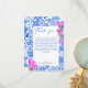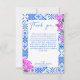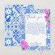 Carte de remerciement élégante de mariage / fête / douche de mariée à écriture moderne et décontractée avec bougainvillea et carreaux bleus.