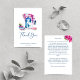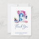 Bougainvillea carte de remerciement bleu et blanc pour une fête prénuptiale sur le thème Méditerranéen