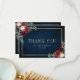 Élégante et moderne carte de remerciement de mariage romantique géométrique à motif floral aquarelle avec de belles roses aquarelles burgundy / marsala, rose blush, pêche, bleu marine avec feuillage assorti sur fond en bois rustique bleu marine et cadre doré. Parfait pour un mariage d'automne / mi-été. Veuillez trouver plus de modèles et variations assortis dans ma boutique "blissweddingpaperie". Et n'hésitez pas à me contacter pour une personnalisation supplémentaire ou des articles assortis.
