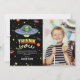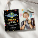 This cool and fun kids birthday thank you card features a colorful retro UFO, planets, and stars, and can be personalized with your own message and photo. The perfect outer space design for your boys neon birthday!