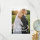Marié ! Annoncez votre mariage avec cette carte à plat mariée. Il est doté de lettres de brosse avec une simple typographie. Personnalisez en ajoutant vos noms, date mariage, message et photos. Cette carte mariée est parfaite pour n'importe quel thème et saison mariages. Il est disponible sous forme de carte à plat, carte postale et carte pliée.