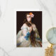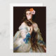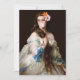 Pop art remix d'un tableau vintage d'une femme avec deux fleurs dans ses cheveux soufflant une bulle rose gomme