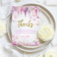 La conception présente des couleurs pastel comme le lavande, le menthe et le rose bébé, ornées de fleurs de wistéria délicates et de papillons ludiques. Ces éléments créent une atmosphère douce et magique. L'invitation comporte les mots "merci" en écriture scintillante dorée, ajoutant une touche d'étincelle et de plaisir. Ce design simple mais enchanteur est parfait pour une célébration d'anniversaire joyeuse comme le 1er anniversaire, le 7e anniversaire et plus.
