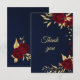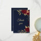 romantique fleurs de burgundy et feuilles d'or botanique carte de remerciement bleu marine. Les détails de paillettes sont simulés