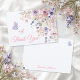 This flat thank you card is designed to match the sweet and whimsical “A Little Butterfly Is On The Way” theme. The front features soft watercolor wildflowers and greenery, with pink and purple butterflies fluttering around the words “Thank You” in a classy, elegant script font in pink. The soft color palette of blush pinks, dusty rose, lilac, lavender, violet, and fresh greens adds a gentle and charming touch.