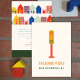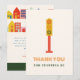 Thème de baby shower neutre New kid on the block avec illustration sur le devant d'un feu de circulation avec le texte "merci de votre visite". Le dos présente des maisons et des bâtiments avec un message de remerciement.