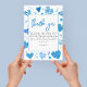 Ces adorables cartes de remerciement pour une baby shower, conçues pour aller avec le faire-part de naissance 'sweetheart'. Le design présente de doux cœurs bleus aquarelle de différents motifs et tailles avec un message de remerciement élégant.