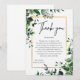 Cette carte de remerciement botanique est un élément de papeterie au eucalyptus qui combine une fraîcheur organique avec une sensation structurée et haut de gamme, ce qui la rend appropriée pour les mariages modernes, les douches de mariée ou les fêtes de fiançailles.