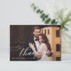 Une carte de mariage double face pour vous remercier avec une merveilleuse image des nouveaux mariés et du texte calligraphique. Ajoutez un message de remerciement personnel et votre propre photo de mariage.