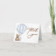 Ce design "We can bearly wait" présente un ours en peluche beige et marron à l'aquarelle avec un arc bleu, assis sur un nuage à côté d'une montgolfière vintage de style toile de Jouy. Cette disposition propre et classique est idéale pour un baby shower à thème neutre et intemporel. La calligraphie élégante est associée à des polices serif classiques.