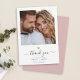 Cette carte de remerciement cœur or chic moderne comporte une calligraphie manuscrite ainsi que vos noms dans une typographie serif élégante sous votre photo de mariage préférée. C'est la version rose blush et blanc.