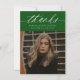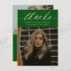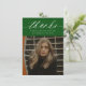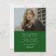Budget Calligraphy Two Photo Green Graduation Carte de remerciements propose une typographie minimale et une photo sur le devant, avec une deuxième photo sur le dos et des détails optionnels.