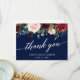 Carte de Remerciement de Mariage Floral Bleu Marsala Bourgogne à l'Aquarelle avec Calligraphie Moderne Élégante - Dos Blanc