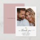 Cette note de remerciement moderne et chic avec un coeur en or comporte une calligraphie manuscrite ainsi que vos noms dans une typographie serif élégante sous votre photo de mariage préférée. C'est la version rose blush et blanche.