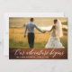 Élégante calligraphie moderne Notre aventure commence Carte de remerciements photo Mariage - Rustique Pays Bois