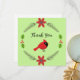 Illustration d'un mignon cardinal rouge de dessin animé pour la saison des fêtes de Noël. Cet adorable design d'oiseaux kawaii est une idée cadeau pour les amateurs d'oiseaux et de fêtes de Noël. Personnalisez ou customisez ce carte de remerciements en ajoutant votre propre salutation ou texte pour votre famille, amis, collègues ou camarades de classe.