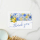 Personnalisez votre jolie carte de remerciement plat Fête de mariage Carrelage bleu italien Lemon et rendez-la unique pour votre journée mémorable !