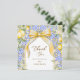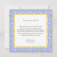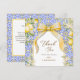La "carte de remerciement élégante et féminine en carrelage méditerranéen au citron italien" est une façon sophistiquée et sincère d'exprimer sa gratitude aux invités qui ont célébré la future mariée. Le design présente des illustrations délicates à l'aquarelle de fleurs de citron, entrelacées avec des carreaux bleus méditerranéens, créant un mot de remerciement visuellement attrayant et festif. La police d'écriture élégante ajoute une touche de beauté raffinée, ce qui en fait la façon parfaite de reconnaître la gentillesse et la générosité de ceux qui lui sont chers. Avec un espace vierge suffisant au verso, cette carte offre une touche personnelle pour un message manuscrit d'appréciation.