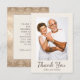 Carton de remerciement personnalisé avec photo pour une fête d'anniversaire de mariage élégant et vintage avec damassé or et crème. Le texte sur ce carton est entièrement personnalisable et peut être modifié pour toute célébration d'anniversaire. Contactez-moi pour obtenir de l'aide pour vos personnalisations ou pour demander d'autres produits Zazzle assortis ou coordonnés pour votre fête.