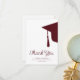 Écriture moderne tendance bordeaux rouge foncé et blanc simple carte de remerciements de graduation minimaliste modèle avec une casquette de graduation avec des tassels. +++++++++++ Facile à personnaliser avec vos détails et texte personnalisé !