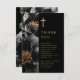 Cet élégant carte de remerciements funéraire chrétien floral noir et or peut être personnalisé avec votre message dans la typographie classique. Conçu par Thisisnotme©