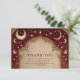 A luxurious celestial wedding design framed in deep burgundy and antique gold. This ornate baroque invitation features glowing moons, stars, and cosmic filigree — blending old-world romance with a touch of divine mystery. Perfect for celestial, gothic, or royal-themed weddings seeking a timeless yet magical aesthetic.