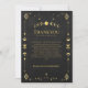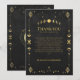 This Celestial Gothic black and gold wedding thank you card showcases refined celestial detailing, luminous moon phases, and geometric tarot-inspired ornamentation in antique gold on a deep charcoal backdrop.