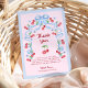 Ces adorables cartes de remerciement de baby shower présentent un style fantaisiste et fantaisiste avec un arc bleu aquarelle, ruban, fleurs et cerise rouge sur un arrière - plan rose. Élégant script rouge vintage dit "Merci", et le dos comporte un motif d'aquarelle bleu diamant et cerises. Ce design rétro chic et élégant est parfait pour une petite fille.