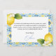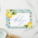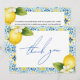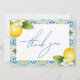 Exprimez votre gratitude sincère avec cette carte de remerciement de fiançailles "That's Amore Italian Lemon Blue Tile". Dotée d'un design charmant inspiré de la Méditerranée avec des citrons vibrants et des carreaux bleus complexes, cette carte élégante ajoute une touche de romance italienne à votre appréciation. Parfaite pour remercier vos invités pour leur amour, leurs cadeaux et leur présence, cette carte de remerciement élégante complète parfaitement le thème de votre fête de fiançailles. Personnalisez avec votre message pour un effet spécial. Une façon intemporelle de partager votre gratitude !