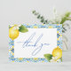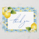 Exprimez votre gratitude sincère avec cette carte de remerciement de fiançailles "That's Amore Italian Lemon Blue Tile". Dotée d'un design charmant inspiré de la Méditerranée avec des citrons vibrants et des carreaux bleus complexes, cette carte élégante ajoute une touche de romance italienne à votre appréciation. Parfaite pour remercier vos invités pour leur amour, leurs cadeaux et leur présence, cette carte de remerciement stylée complète parfaitement le thème de votre fiançailles. Personnalisez avec votre message pour une touche spéciale. Une façon intemporelle de partager votre gratitude !