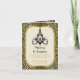 Chandelier Art Deco noir, carte de remerciement photo or avec un lustre noir, une bordure de style Art déco et un damas floral noir et or sur fond beige/ecru. Votre photo est à l'intérieur gauche. Ce design élégant est une approche moderne d'un style vintage/retro qui ressemble à celui des Années folles et de Gatsby le Magnifique. Il fait partie d'un ensemble de mariage et est entièrement personnalisable.