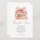 This is a Chapter Storybook Pink Bow Storybook Birthday Party Thank You Card.