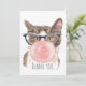 L'illustration de l'aquarelle de Whimsical montre un chat portant des lunettes de style rétro funky soufflant de la gomme à bulles. Certainement pas votre carte de remerciements fleurie/fantaisie moyenne - et pourtant il fonctionne si bien pour tant de situations.