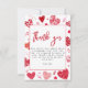 Ces adorables cartes de remerciement pour une baby shower, conçues pour aller avec le carton d'invitation 'chérie'. Le design présente de doux cœurs aquarelles de différents motifs et tailles avec un message de remerciement élégant.