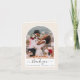 Carte de remerciements plié minimaliste et élégant pour les jeunes mariés avec votre photo dans un cadre d'image voûté contre un arrière - plan crème, "merci" dans un script moderne élégant et votre nom et votre date mariage Mr & Mrs dans une simple typographie. À l'intérieur, vous pouvez personnaliser un message de remerciement et ajouter vos prénoms comme signature, avec de l'espace à gauche pour écrire un message personnel à la main, et en haut pour s'adresser personnellement au destinataire si désiré.