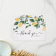 La carte de remerciement chic comporte une écriture calligraphique élégante, un fond blanc à texture rustique, des citrons appétissants peints à l'aquarelle, des fleurs de pommier délicates et une verdure peinte à la main. Personnalisez avec vos informations ou cliquez sur "personnaliser davantage" pour modifier les styles de police, la taille et les couleurs. Peut également être personnalisé au verso avec votre propre message dactylographié ou supprimer cet espace pour écrire votre propre message à la main.