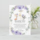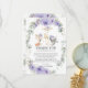 Personnalisez ce charmant carte de remerciements boisé fleuri violet avec votre message de remerciement et des détails aujourd'hui! Appuyez simplement sur le bouton customiser pour réorganiser et formater le style et le placement des textes. Doté d'animaux de forêt mignons et de fleurs lilas violettes et vertes à l'aquarelle chic. Objets correspondants disponibles en magasin. c) Le Happy Cat Studio.