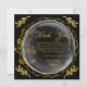 Cette élégante carte de remerciement noire et dorée présente une couronne de cercle géométrique floral stylé avec des feuilles dorées délicates sur fond noir, un design intemporel et moderne qui convient à de nombreuses occasions spéciales. Que vous envoyiez un message de gratitude après un anniversaire de mariage, une baby shower, une fête de fiançailles, une célébration de diplôme ou un rassemblement de retraite, cette carte de remerciement minimaliste mais luxueuse ajoute la touche finale parfaite.