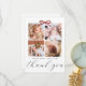 This simple, chic four-photo college baby shower thank you card template features a modern, elegant look. It features four of your favorite baby photos crowned by a red bow, a ´´thank you´´ header in elegant script calligraphy, and your baby´s name and birth date in chic font. The reverse features your custom thank you message and a tiny red ribbon. Use the intuitive design tools, your favorite photos, and your inspiration, and make this minimalist, elegant multi-photo collage baby shower gift thank you card uniquely yours!
