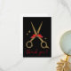 Ces ciseaux à parties scintillant dorées font une carte parfaite pour votre entreprise. Texte facile à ajuster! Une combinaison classique de couleurs noir et or. modèle élégant avec un ruban rouge.
