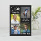 Carte de remerciements moderne de graduation avec un design de typographie stylisé pour LA CLASSE DE "L'ANNÉE" (éditable année) avec un collage photo de 4 images sur le devant et 1 sur le dos et le nom et l'école de votre diplômé contre un arrière - plan de couleur personnalisé (l'exemple montre noir) que vous pouvez changer à une couleur d'école ou de couleur préférée ou choisir parmi une variété de style graphistes arrière - plans pour lui donner un look personnalisé. Le dos offre un endroit pour préimprimer un message de remerciement général ou spécifique ou supprimer l'exemple de texte à laisser vide pour les notes d'appréciation manuscrites. CHANGEMENT DE COULEUR : Cliquez sur PERSONNALISER PLUS loin dans la section PERSONNALISER. ASSISTANCE : Pour obtenir de l'aide sur la modification/personnalisation de la conception, le changement de couleur, le transfert de la conception vers un autre produit ou si vous souhaitez coordonner des éléments, contactez le concepteur AVANT DE COMMANDER via Zazzle Conversation ou makeitaboutyoustore@gmail.com.