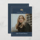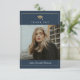 Cet élégant carte de remerciements de graduation photo classique est doté d'une casquette de graduation or et d'un cadre simple avec du texte personnalisable et une photo sur le devant. Le dos a un message personnel et une signature. Une excellente façon de présenter votre diplômé. Cliquez sur le bouton Modifier pour personnaliser cette conception.